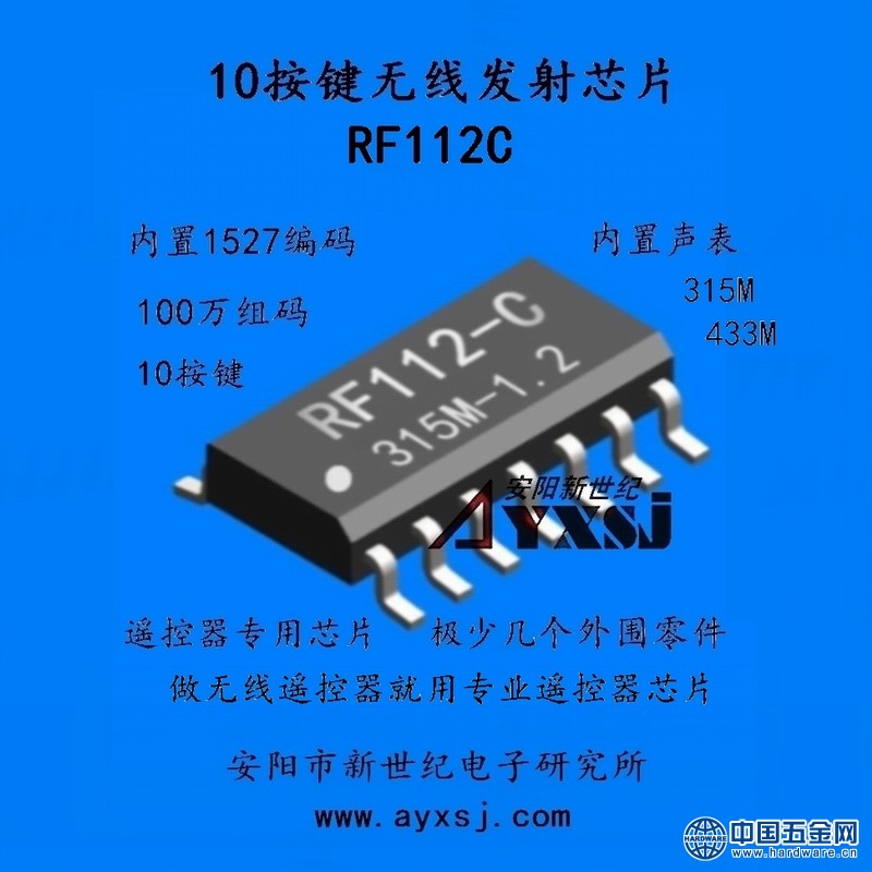 315/433M无线发射芯片10按键遥控器芯片RF112C