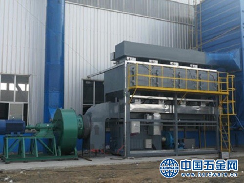 在化学反应过程中,利用催化剂降低燃烧温度,加速有毒有害气体完全氧化的方法,叫做催化燃烧法。由于催化剂的载体是由多孔材料制作的,具有较大的比表面积和合适的孔径,当加热到300~450℃的有机气体通过催化层时,氧和有机气体被吸附在多孔材料表层的催化剂上,增加了氧和有机气体接触碰撞的机会,提高了活性,使有机气体与氧产生剧烈的化学反应而生成CO2和H2O,同时产生热量,从而使得有机气体变成无毒无害气体。