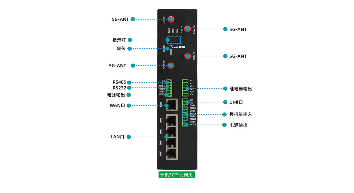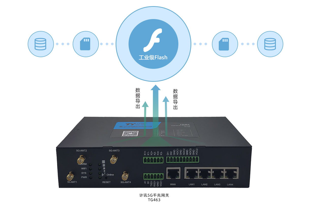 计讯物联TG463 5G千兆网关集成了前端数据采集和5G千兆速率传输功能,