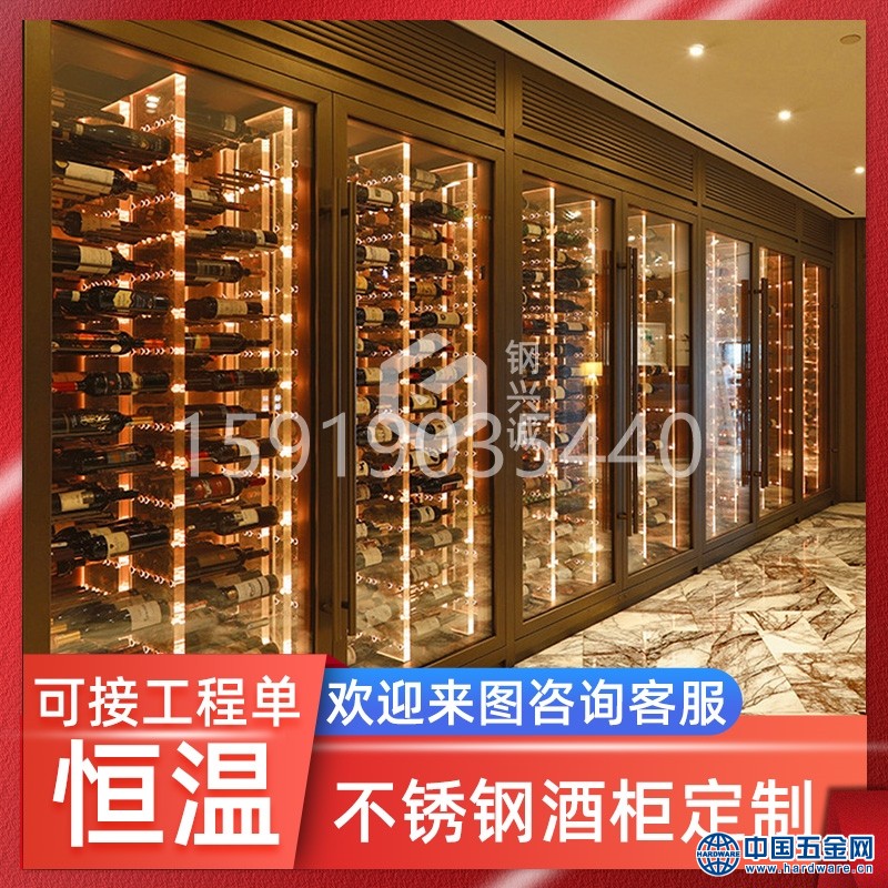 “钢兴诚不锈钢 定制不锈钢酒柜 恒温酒柜”详细介绍产品名:不锈钢酒柜(定制)规格:可以根据要求或现场储酒量:按要求。温度:5-22度可自由调切,或常温展示型湿度:55--70%。不锈钢箱体颜色:玫瑰金,香槟金,钛金,黑钛伟煌业生产不锈钢恒温酒柜系列都是是量身定制酒柜,需要一定的工程流程和制作时间,可以提供定制酒柜的尺寸和场地照片,然后制作设计初稿,详细情况请联系咨询。