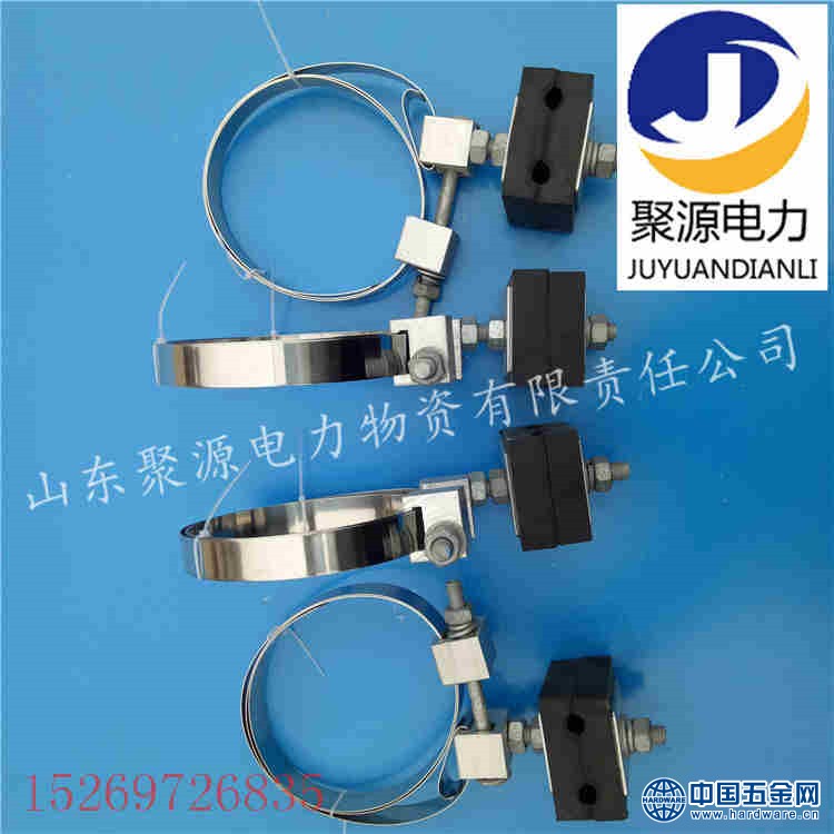安装方法:1、杆用引下线夹通过304不锈钢带抱箍与电杆连接,将钢带抱箍安装在电杆上, 再将橡胶夹头安装在钢带上,即可完成安装。