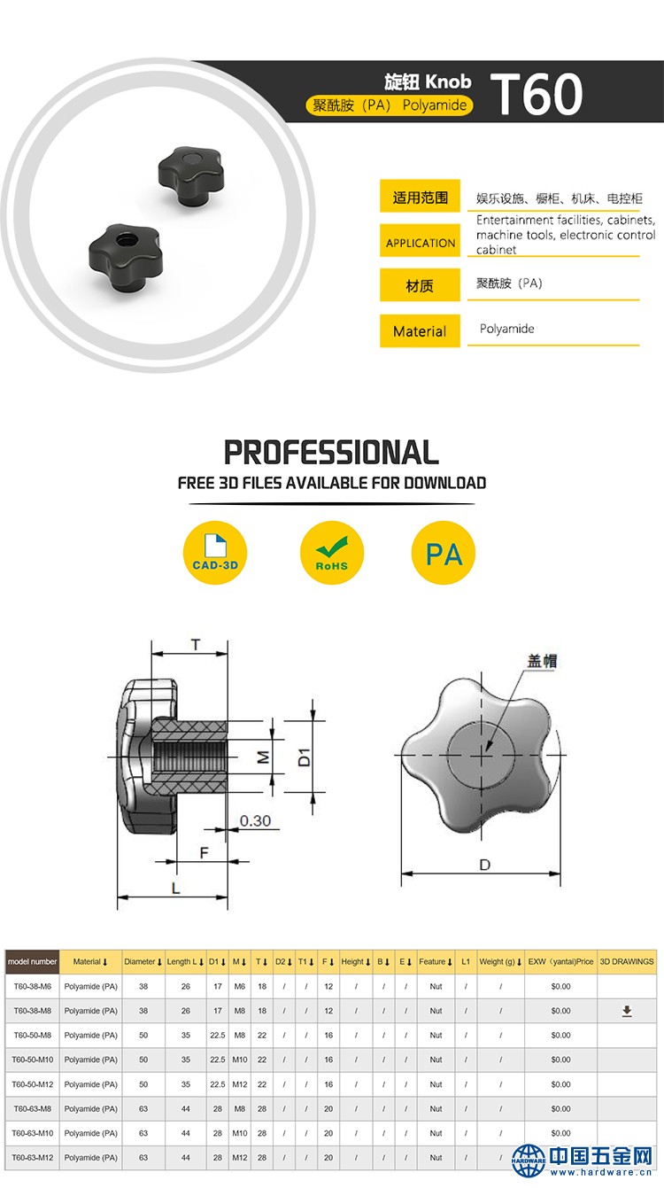 五星螺母旋钮