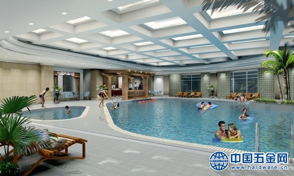 游泳池是以静为主,营造一个让居住者在心理和体能上的放松环境,同时突出人的参与性特征。居住区内设置的露天泳池不仅是锻炼身体和游乐的场所,也是邻里之间的重要交往场所。泳池的造型和水面也极具观赏价值。