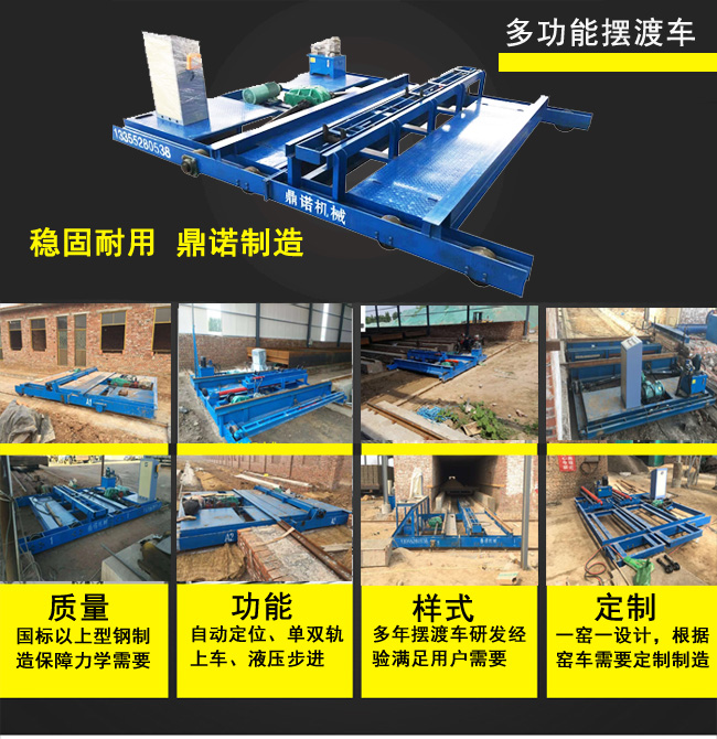 砖厂运转设备大全,淄博鼎诺机械有限公司是专注于砖厂运转设备制造的企业,公司坐落于山东省淄博市博山区,淄博鼎诺机械有限公司制造的砖厂运转设备由:各种规格性能摆渡车、液压顶车机、窑车出口牵引机,地爬车、回车牵引机、码坯定位机,是专业设计、制造砖窑运转设备的厂家。