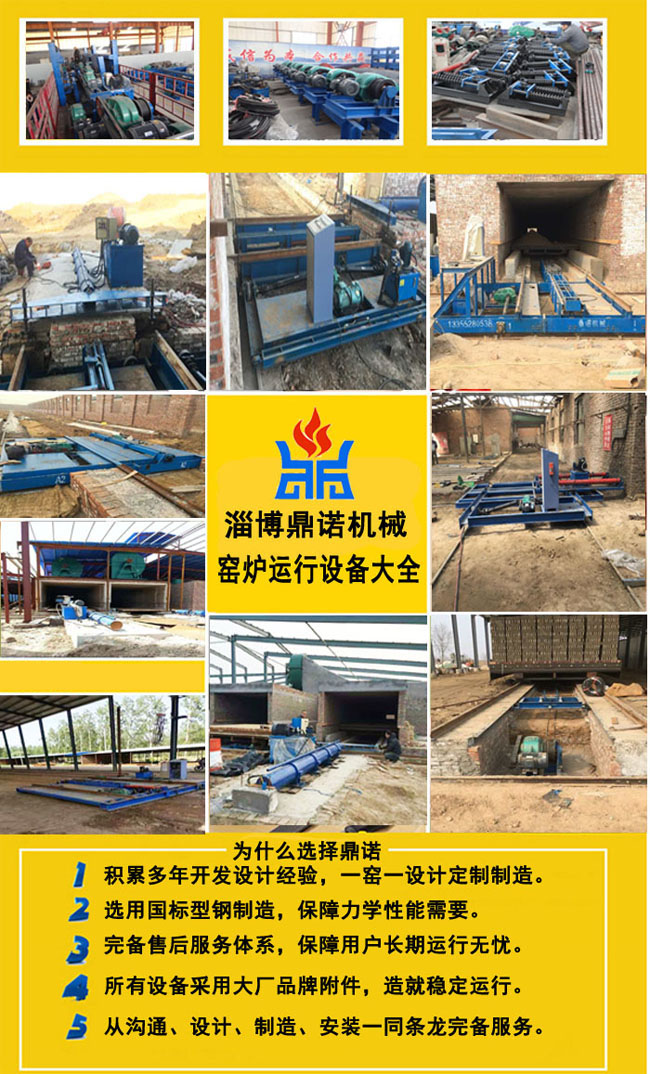 鼎诺砖瓦窑运转设备产品销往甘肃、河南、山东、山西、陕西、安徽、江苏、江西、新疆、黑龙江、辽宁、吉林、湖北、内蒙、海口、广东等全国各地及出口部分国家和地区。实现砖窑正常运转,选择一套力学设计科学,材质国标型钢的运转设备非常关键,这决定了窑炉正常生产稳定状态,谁也不愿意故障频发,不能保障连续化烧砖作业的运转设备。但是决定长久无忧运行的前提就是设计首先要科学,力学性能要满足,只有追求技术的企业才能制造出设计科学合理的运转设备,这恰恰是淄博鼎诺机械的优势。