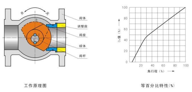 PQ347F侧装式偏心半球阀执行器(或扳手)带动阀杆迫使关闭件球体绕中心A转动,球体自B点移至C点,此时相对阀门中心点O,从B到C的轨迹为一凸轮状偏心,右旋进入阀座是阀门关闭保持优良密封,该产品按凸轮原理设计,阀门关闭件从开启到关闭过程中,作用在阀座上的力逐渐增加,即关闭件表面与阀座由完全脱离至接触,并逐渐增大密封比压,直至完全密封,反之为开。见下图: