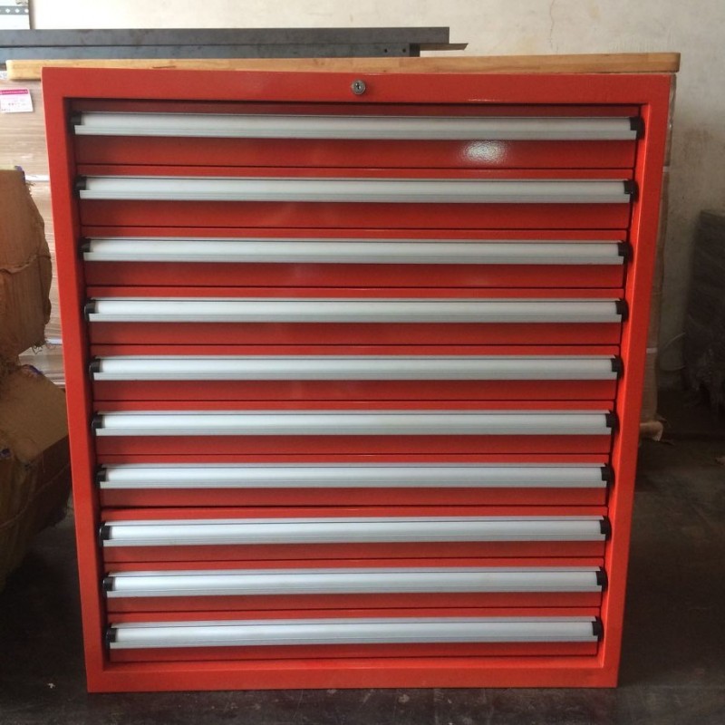 重型工具柜采用轴承式抽屉,其中导轨可85%打开,每屉承重100kg,适用于放置量具、工具、刀具、夹具、工装等物品。