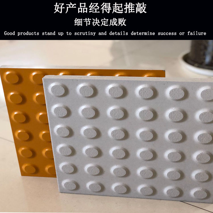 随着近几年地铁、高铁等建筑的大力建设,陶瓷盲道砖也被大量使用,生产全瓷盲道砖的很多厂商为了降低成本,采用劣质石材来制作盲道砖,这种石材做出来的盲道砖色泽不均匀,平整度差,很多的客户拿到这种盲道砖后发现很难施工,卖家就会告诉他盲道砖国标中允许尺寸误差的,但事实真是如此吗?还有盲道砖好产品和劣质的在外观上有什么区别?