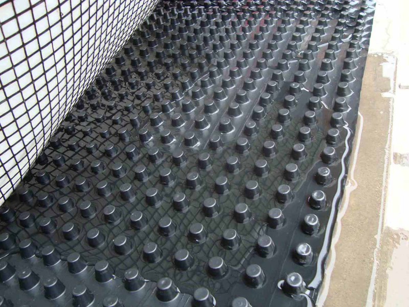 蓄水排水板pvc排水板抗压强度大,它的抗压强度是同等厚度ps卷材的1.5倍,hdpe材料的2.5倍。厚度0.7mmpvc材料h20排水板抗压强度在300kpa以上,而同等厚度ps和hdpe材料抗压强度只有150kpa左右。由于加强筋设计结构一般情况下轿车在上面直行不会压扁任何一个支撑柱。这是其它ps和hdpe材料无法达到的既能粘接又能烫接。由于pvc材料是非晶体结构,采用特种胶水能有效破坏材料表面结构从而使二层膜能有效的溶合在一起,使施工完成后起到防水隔根功能。同时也可用机械烫接。二次防水功能,排水卷材铺设完毕由于采用粘接或烫接形式,从而形成一个新的防水层,即有排水功能又有二次防水功能。疏水板打设时回带长度不得超过500mm。