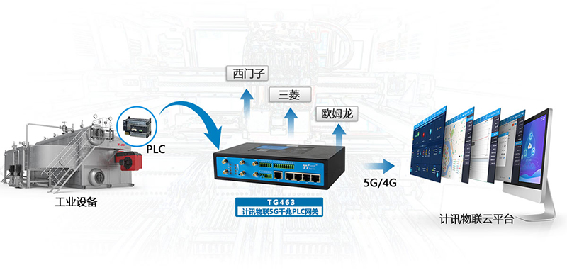 计讯物联TG463 PLC网关内部集成主流PLC协议,支持各类PLC设备远程数据采集、设备控制、数据主动上报平台。可同时接入多种PLC设备,实现多设备远程数据监控,同步工作,独立监控。