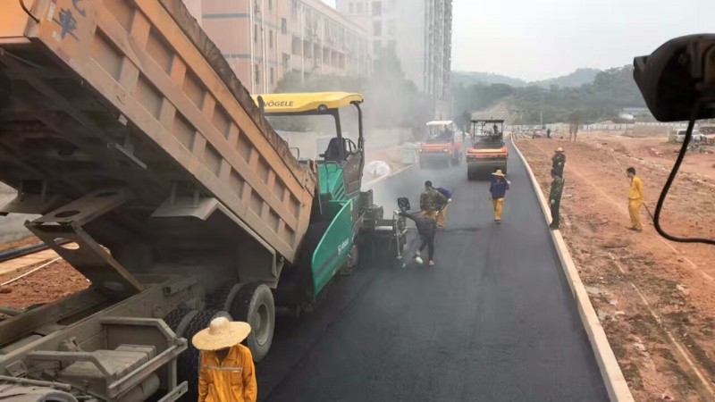 碾压,压实后的沥青混合料应符合平整度和压实度的要法语,因此,沥青混合料每层的碾压成型厚度不应大于10cm,否则应分层摊铺和压实,其碾压过程分为初压、复压和终压三个阶段。初压是在混合料摊铺后较高温度下进行,宜采用60~80kN双轮压路机慢速度均匀碾压2遍,碾压温度应符合施工温度的要求,初压后应检查平整度、路拱必要时应予以适当调整;复压是在初压后,采用重型轮式压路式或振动压路机碾压4~6遍,要达到要求的压实度,并无显著轮迹,因此,复压是达到规定密实度的主要阶段;终压紧接着复压进行,终压选择60~80kN的双轮压路机碾压不少于2遍,并应消除在碾压过程中产生的轮迹和确保路表面的良好平整度。