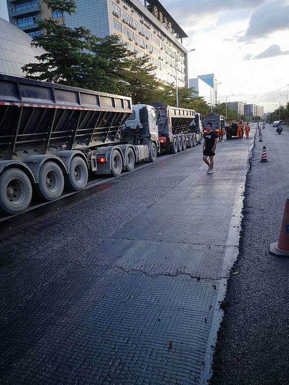 ②采用两台摊铺机进行双机联队全幅摊铺,上下两层错缝0.5m,摊铺速度控制在2-4m/min。深圳市中恒沥青工程有限公司摊铺过程中对于道路上的井,在底层料进行摊铺前用钢板进行覆盖,以避免在摊铺过程中遇到井而抬升摊铺机,保证平整度。在摊铺细料前,把井抬至实际摊铺高程。