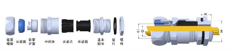 RG-SS不锈钢软管电缆接头产品之特殊设计既可防电线松动,又可连接金属软管,装卸只需拔插无需工具,大大缩减了安装时间,夹紧电缆范围大抗拉力特强,产品有耐酸碱、耐化学物质与一般溶剂等抗腐特性,可防水、防尘。