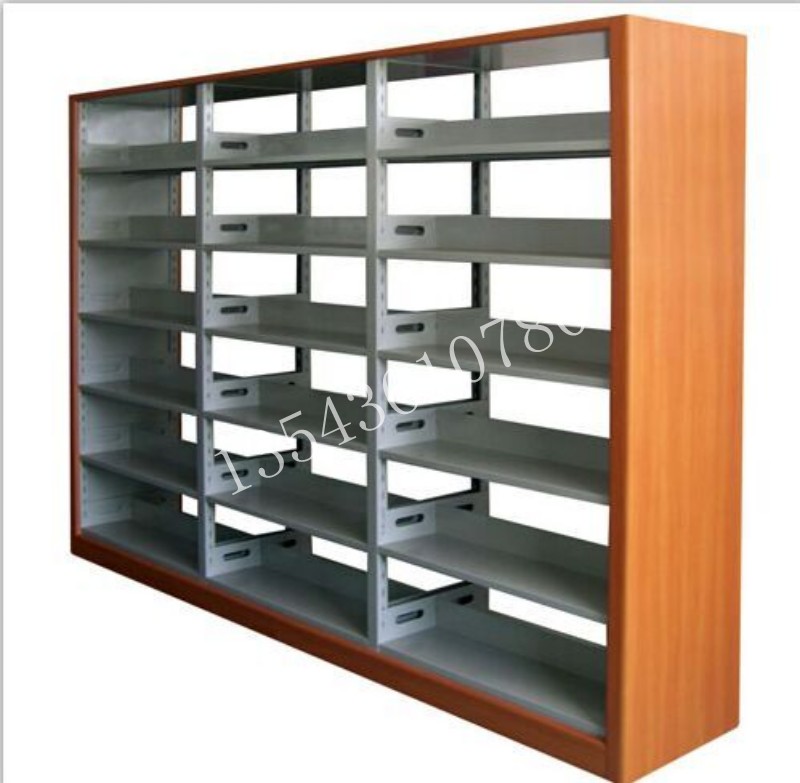 1)木护侧单柱双面图书馆书架材质:木材采用印尼进口山樟制作,该木天然防腐、防虫;