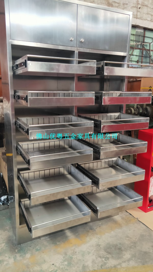 不锈钢储物柜采用数控电焊技术焊接部件由大型模具一次冲压成型,减少焊接点,使其外观更加美观抽屉滑轨采用二节滑轨,使承重力不宜变形。