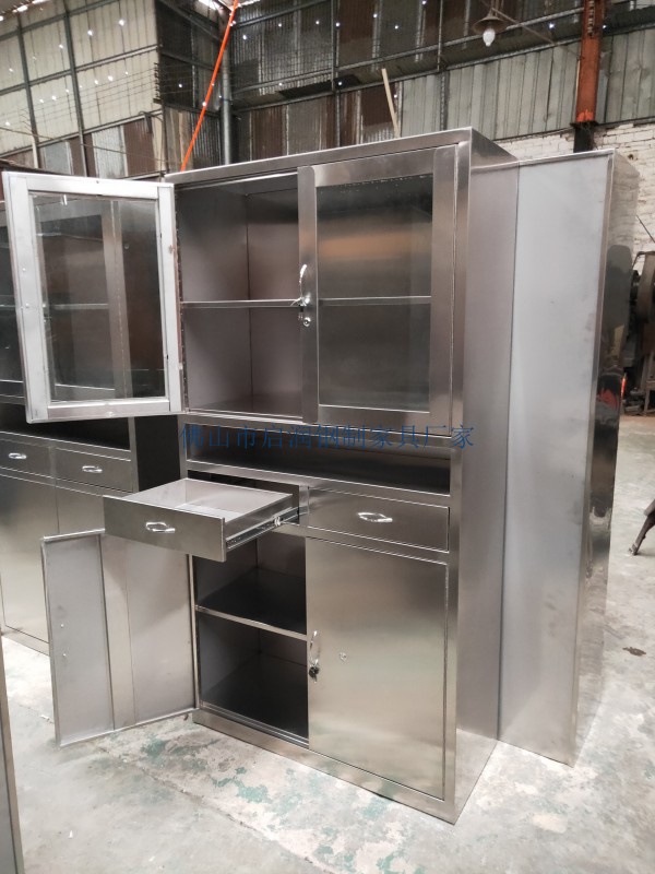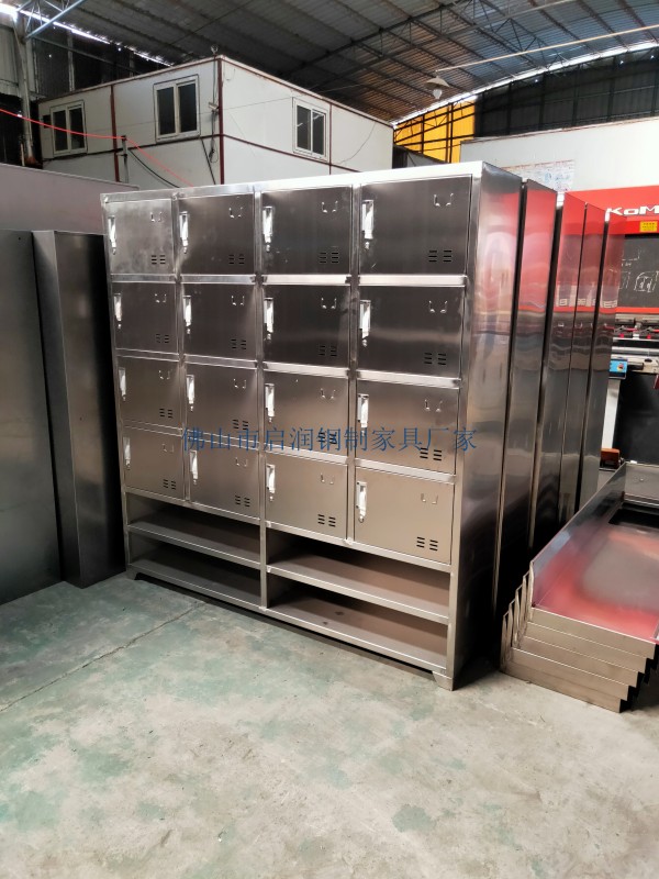 顺德不锈钢鞋柜工厂304对开大器玻璃柜加工定做钢制更衣柜