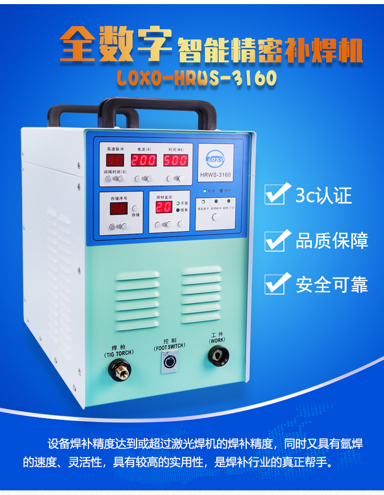 5、 全数字化:CPU控制系统焊补时输出数据不漂移,控制更准,1A小电流稳定运行,1/1000秒瞬间熔接。
