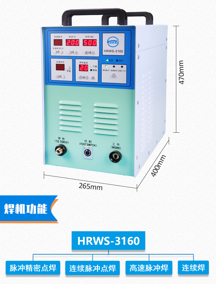 1、精密脉冲焊 2、连续脉冲焊 3、高速脉冲焊4、连续焊(TIG)