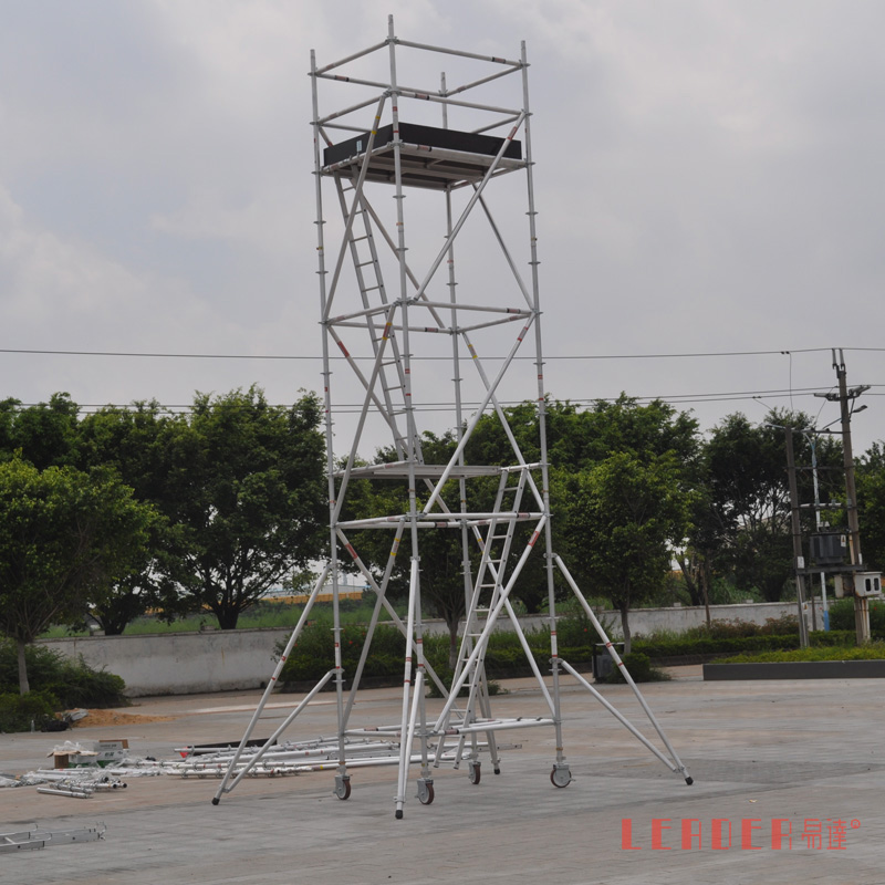 易达盘扣式脚手架铝合金用途广,室内外工程装饰装修,广告牌维护更换,灯饰维修,玻璃幕墙清洁等所有涉及高空作业方面均可满足.多功能,易达高空作业脚手架铝合金可单使用,亦可组合拼接混搭,能移动,工作高度可随意调节,操作简单快捷.高空作业脚手架效机动灵活,快速拆装,不用螺丝,直接卡扣或者锺子敲紧余契,搭建起来效率事半功倍.
