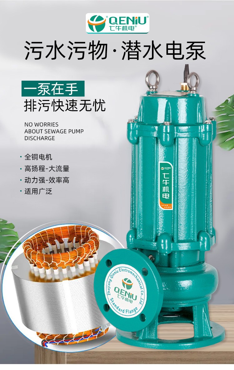 七牛WQ系列排污泵切割式抽粪污水泵家用220v泥浆泵380v