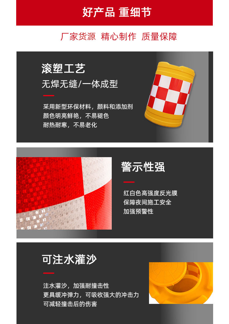吹塑滚塑防撞桶圆柱型高速道路安全隔离防撞墩施工警示夜间反光桶