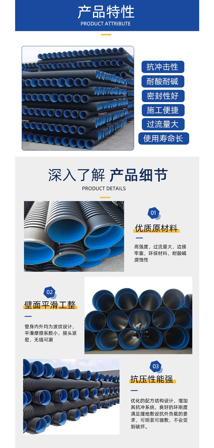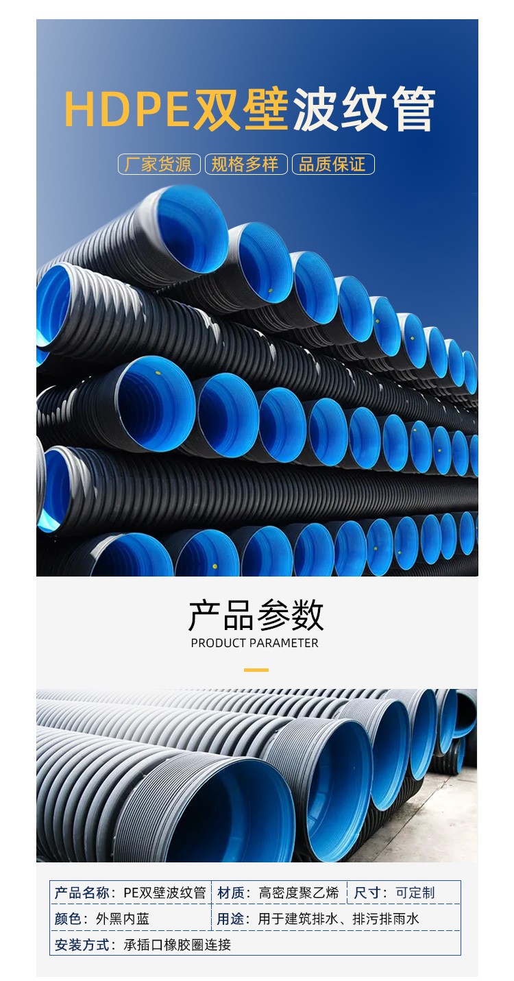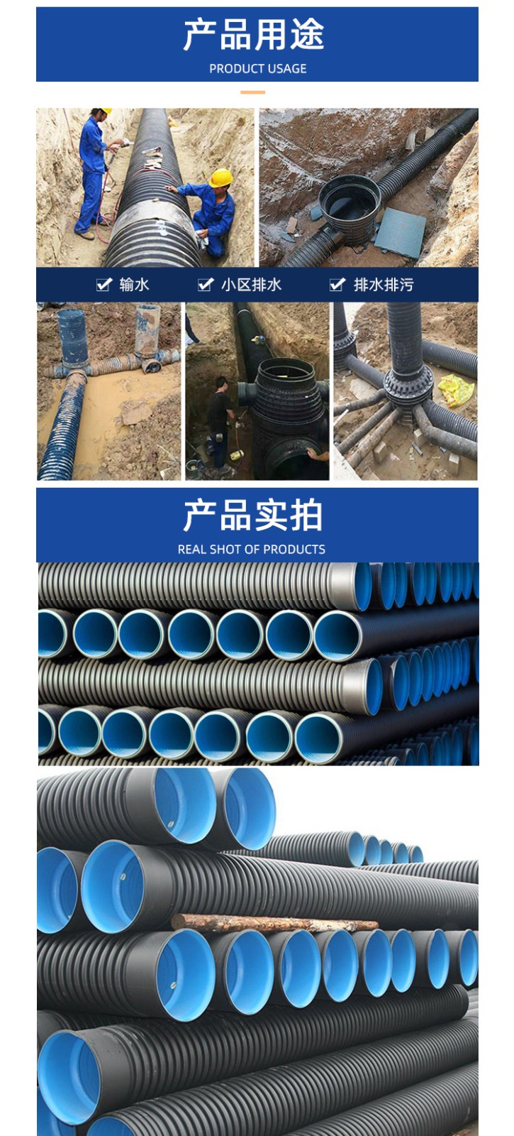 PE双壁波纹管高密度聚乙烯螺旋排污管分流下水道黑色市政排水管