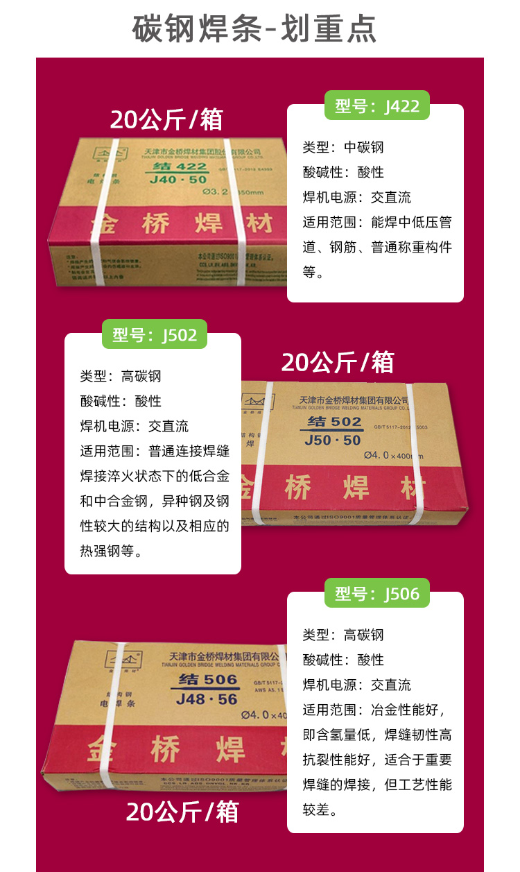 金桥/大桥焊条J422J502J506耐磨碳钢电焊条