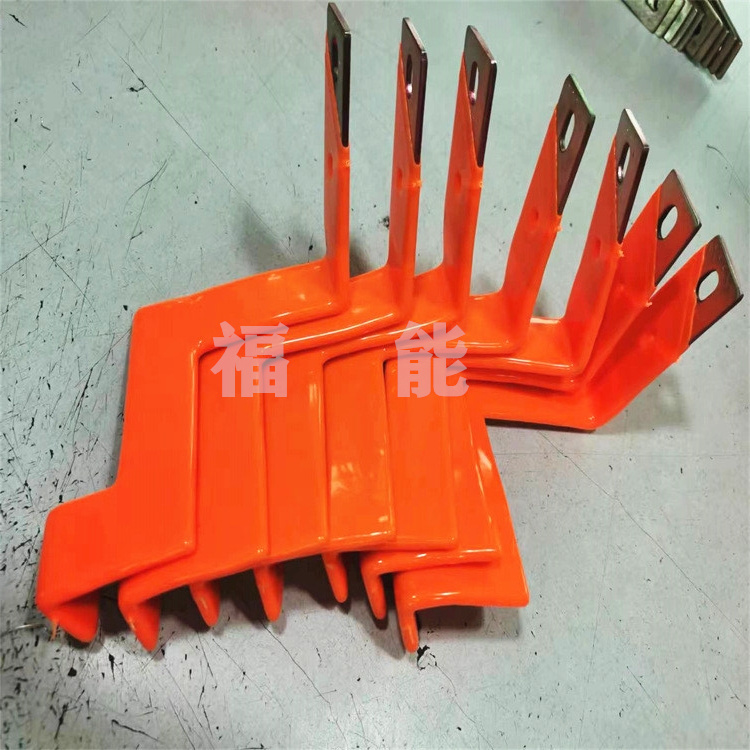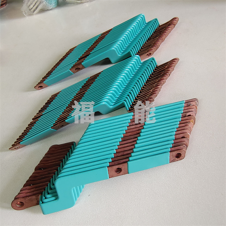 优点:浸塑、包胶、环氧树脂涂层铜排电流大电阻小,具有较好的耐碱性、耐热性、耐腐蚀性和电绝缘性。它既保持了铜排原有的强度和刚度,又具有塑粉涂层防腐性能优良、光滑耐磨等特点,从而大大延长了铜排的使用寿命。