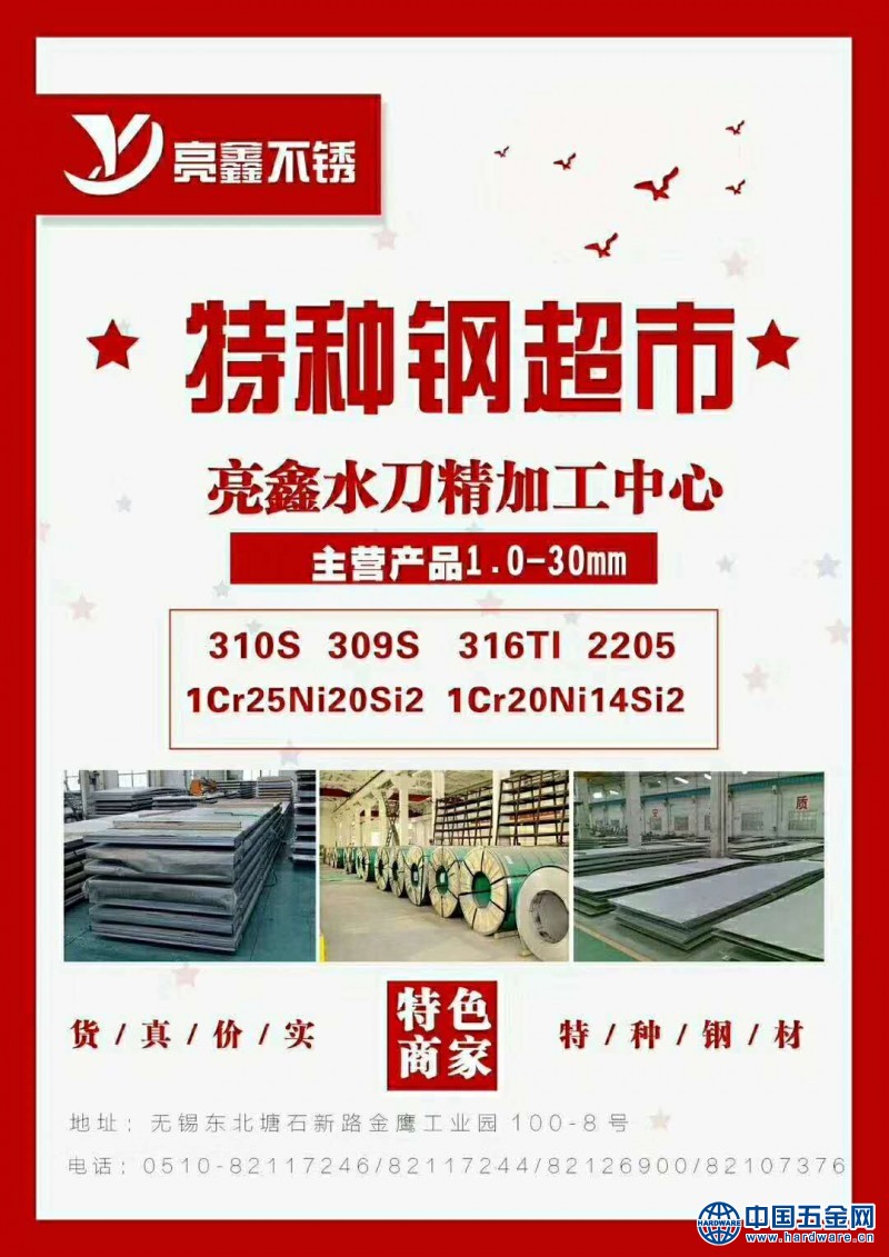 无锡亮鑫不锈钢公司是经营批发、零售太钢310S、309S、316L、321、304等各材质的不锈钢,主营310S、309S耐热不锈钢,是太钢的一级代理商,有着价格的绝对优势,量大价更优。