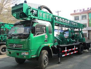 产品主要特点及用途: ◎BZCFY150CA车载式正反循环钻机是我厂自主创新产品,是一种车载式全液压动力头回转钻机;钻机选用长安重汽6×4(中驱+后 驱)专用钻井车底盘,发电机、液压系统、电控系统、8BS砂石泵、Sz-2真空泵、钻塔等均安装在汽车底盘上; ◎钻机以汽车发动机为动力,配套100 kW发电机,并加装外接电源动力系统,既可以以汽车发动机为动力,也可以外接电源钻井作 业,实现“柴电两用”和机电液气一体化控制; ◎钻机配有8BS砂石泵正反循环泵组,采用泥浆作为冲洗液,通过切换泥浆循环方向实现正反循环钻进;钻机加装Sz-2真空泵引水系 统,为8BS砂石泵引水提供方便; ◎钻机加装全车液压系统,液压提升动力头,液压起降塔架,四个支腿液压控制, 两个后支腿可以水平伸缩,四个支腿既可以同时 操作又可以单独动作,提高了钻机的灵活性,便于钻机快速调平; ◎钻机使用钻杆为螺纹连接形式,配套专用上卸杆装置,操作简便省力;钻机加装液压油缸提升加减压装置,遇到泥岩、强风化等 硬质地层可以辅助加压钻进,也可以辅助减压钻进,以提高成孔效率和保护钻具; ◎钻机外观漂亮大气,液压动力头扭矩大,配套我厂专用钻头钻具,钻井作业进尺快,适用于在第四纪松散层、卵砾石层钻进各种工 农业水井工程、建筑基础、桥梁基础、油田套管、高压线桩、风电底桩、港口码头、水坝基础的施工,深受国内外客户的欢迎。