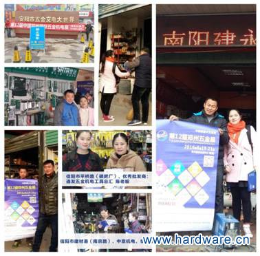 2015年11月-2016年1月间,郑州五金展组委会共走访了安阳、信阳、南阳、洛阳、山东临沂、晋城、运城、新乡等地市,拜访当地的优秀批发商,与千余家商户深入沟通行业发展现状,为郑州五金展的运作提供良好的思路。总计78%的商户比较认可郑州五金展,对展会的参展商的质量、同期活动的品质都较为满意,同时也抱以更大期望。