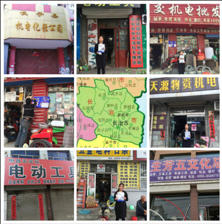 2016年5月13--14日,郑州五金展组委会去往山西长治、运城,展开新一轮的地推观众组织工作。此次市场走访共计16市县,分别为山西长治的长子县、长治县、壶关县、平顺县、潞城市、黎城县、襄垣县、屯留县;山西运城的运城市、临猗县、万荣县、河津市、稷山县、新绛县、绛县、闻喜县、夏县。拜访优秀商户300余家,产品涉及:电动工具、手工具、五金工具、吊索具、电焊机、清洗机、磨料磨具、空压机、气动工具起重工具、标准件、园林工具、机电、水泵、紧固件、农机、电线电缆、劳保、变频器、轴承、螺丝、焊材、传送带等。
