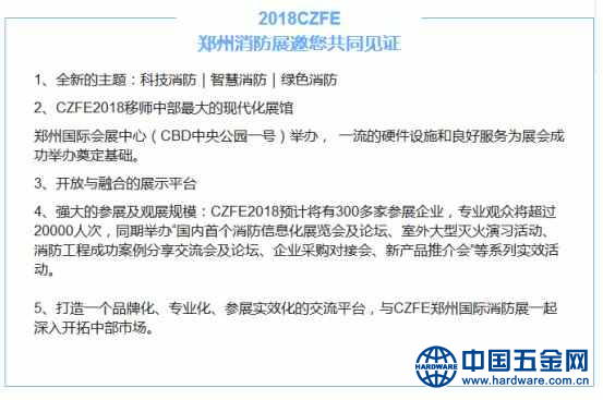 作为一场涵盖产品、技术以及学习交流的消防行业盛会,CZFE2018郑州国际消防展将是企业获得采购机会,需找合作伙伴、建立业务渠道以及把握市场趋势的绝佳平台。
