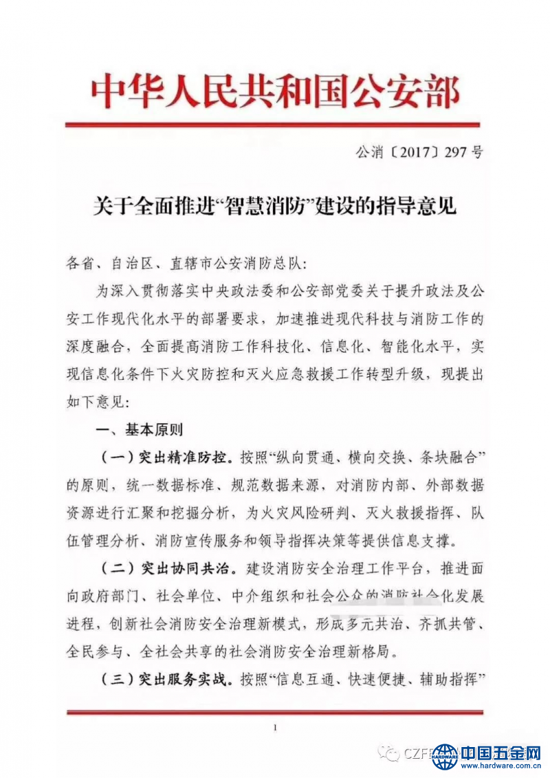 2017年10月10日,公安部消防局发布了《关于全面推进“智慧消防”建设的指导意见》。意见要求,2018年底,地级以上城市建成消防物联网远程监控系统,目前已经建成消防物联网系统的城市,在2017年底,70%以上的火灾高危单位和设有自动消防设施的高层建筑接入系统,2018年底全部接入。