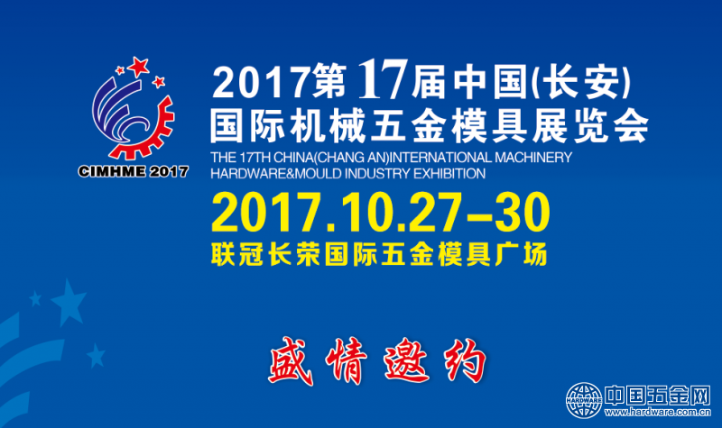 2017第十七届中国(长安)国际机械五金模具展览会(CIMHME2017),以《中国制造2025》为纲领,以“模具名镇·装备中国”为主题,以搭建“高、精、尖”的行业展贸平台为宗旨,主会场设在“联冠长荣国际五金模具广场”,另设分会场“联冠长安商贸城五金模具广场”和“联冠聚和国际机床城”,三馆联动展览。整个展会设临时特装、标准展位共计650个,商铺展位2000个,分为品牌特装区、机床及设备展区、模具及配件展区、五金机电展区、电子商务专区、金融服务展区、长安模具展区、行业媒体展区等功能展区,展览总面积超过20万㎡。