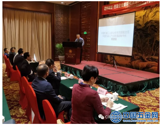 图为中国机械工业联合会展览部副主任 、中国机器人产业联盟副秘书长陈家良先生发言