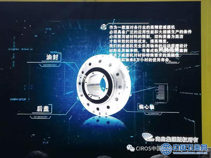 当大家的眼球都被她吸引时,一个震撼人心的视频突然呈现在大家眼前,这就是隐藏在她体内的核心-----海尚机器人关节减速机技术(矢量摆线减速机-SD)视频。这由海尚集团总裁叶华平先生亲自向大家介绍,在震撼的视频配合下,叶华平先生的讲解将本次技术新闻发布会推向了高潮。本来展会现场人声是十分噪杂的,此时此刻除了叶总的声音外,现场一片安静。