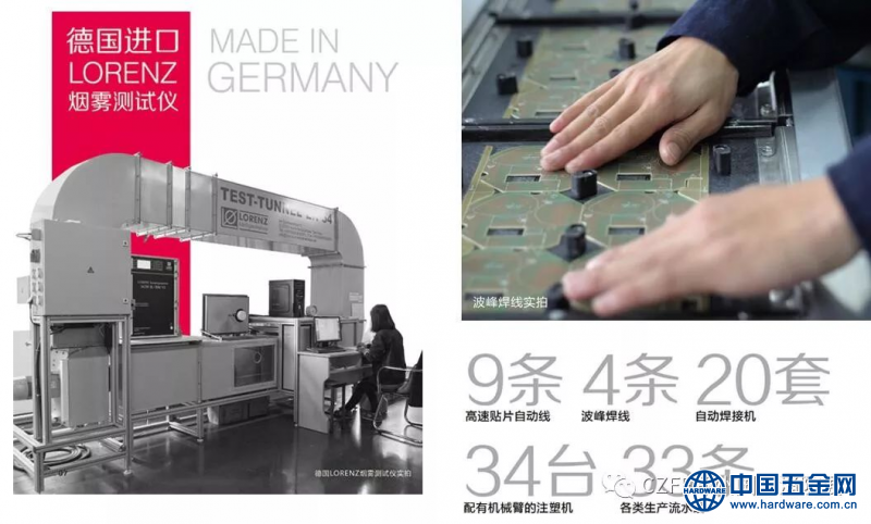 宁波金盾生产、检测设备完善,特斥巨资从国外引进三套国际认证实验室等级高精度烟雾检测设备,三套自主研发的大容量烟雾测试设备以及三套一氧化碳气体测试设备。通过9条高速贴片自动线,4条波峰焊线、20套自动焊接机、34台配有机械臂的注塑机和33条各类生产流水线,实现了生产作业的自动化和半自动化。