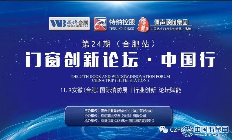 由特纳集团控股(香港)有限公司协办,儒声企业管理顾问(上海)有限公司、香港门窗创新研究院(中国)有限公司、金华市儒声网络科技有限公司主办,威博会展|CZFE郑州国际消防展组委会承办的“第24期《防火门窗行业创新论坛.中国行》(合肥站)”于2018年11月10日在合肥滨湖国际会展中心(5号馆)“11.9安徽(合肥)国际消防展”论坛区举行,敬请关注!