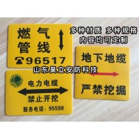 产品介绍: 一、标志内容1:用中文说明此处地下配有何种管线 二、材料与性能 标志牌的基材为高分子聚合材料,具有耐磨、耐水、耐高温( |