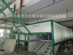 前处理设备:喷淋式多工位前处理机组是表面处理常用的设备,其原理是利用机械冲刷加速化学反应来完成除油、磷化、水洗等工艺过程。钢件喷淋式前处理的典型工艺是:预脱脂、脱脂、水洗、水洗、表调、磷化、水洗、水洗、纯水洗。前处理还可采用侵泡和抛丸清理机,适用于结构简单、锈蚀严重、无油或少油的钢件。且无水质污染。