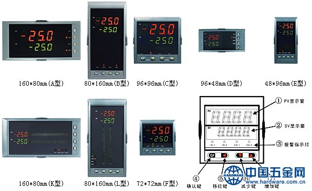 1、选型时请根据接线图来选择功能,由于尺寸小的仪表接线端子少带不了全功能,有的功能在同组端子上只能选择其中一种功能。 型号描述:双路数字显示控制仪,横式160*80mm,2路4-20mA输入,2路4-20mA变送输出,4限报警,RS485通讯,2路馈电24V,AC100-240V供电。 型号描述:双路温度显示控制仪,方式96*96mm,2路Pt100输入,1路4-20mA输出,RS-485通讯,24VDC供电。 |