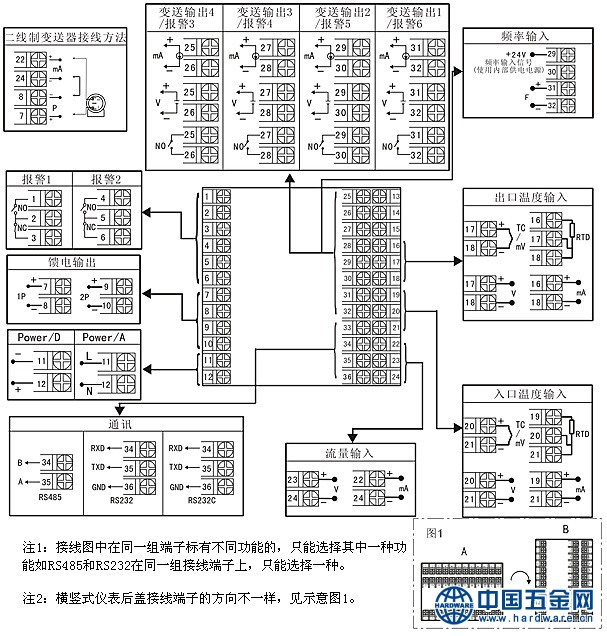 1、变送输出与报警输出可组合,变送输出+报警输出≤6;如果仪表选择频率信号输入时,变送输出Z多只能选择两路,变送输出+报警输出≤4。