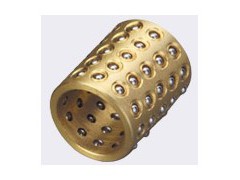 FZH铜基钢球滚珠衬套以铜合金为基体,并在其外圆表面上,加工出排列有序、大小适当,形状特殊的孔穴,在其孔穴中镶入滚动轴承钢球。孔口采用Z新的沟槽圆周锁球工艺,有效地解决了传统点式锁球和压痕锁球不能完全防止钢球脱落的难题。孔底加工出900止口使钢球在孔内自由转动而不脱落。由于钢球的直径大干保持圈的壁厚,所以在使用时钢球高出保持圈内、外圆表面,直接与相配的孔与轴接触,使基体(保持圈)浮于中间,并且相配的孔与轴半径之差小于钢球直径,即钢球与之配合为过盈配合,配合精度高,轴与孔相对运动灵活。是保持圈的更新换代产品。