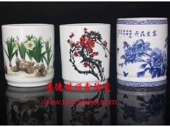 景德镇顺鑫陶瓷厂可在陶瓷笔筒上面烧制客户指定的图案,logo,文字等,为客户倾力打造个性精美的礼品陶瓷笔筒。