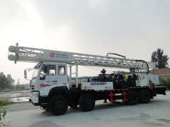2、钻机以转盘回转泥浆正循环钻进为主要钻探方式,配有BW850/2A型泥浆泵,采用泥浆作为冲洗液,通过柱塞泵高压注浆实现正循环钻进,如配备适当钻探工具,也可适应其它钻探工艺方法,可在粘土、砂层、基岩等多种地层中钻进;钻机以汽车发动机为动力,加装分动装置和液压系统,汽车行走、钻井作业同机联动;配置55千瓦电机和电控系统,在有电源的工地可外接电源,实现汽车发动机、电机“双动力”钻机作业;