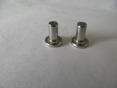实心铆钉:利用自身形变或过盈连接被铆接件的零件。 实心铆钉一般为铝、铜、铁等材质,表面处理为镀白锌。使用铆钉对连接件实行的一种刚性连接,是不可拆卸的。小型铆钉可以冷铆,大型铆钉就是在红热状态下热铆。实心铆钉可广泛用于刀具、文具账册、锁具、头盔汽车五金箱包、童车、汽车离合器钢片、摩托车配件及家用电器类。