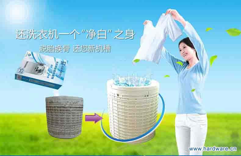 1、彻底去除洗衣机内胆、洗衣机夹层槽内因长期使用而积存的大量抗阴离子活性剂的顽垢、污渍。