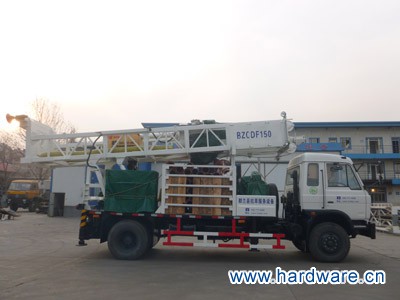 ◎BZCDF200DF车载式反循环动力头钻机是我厂自主创新产品,是一种车载式动力头回转钻机;钻机选用6X4专用钻井车底盘,配置玉柴YC6J180-33水冷四冲程增压中冷柴油发动机,排放标准国四;柴油发电机组、液压系统、电控系统、真空泵、钻塔等均安装在汽车底盘上;