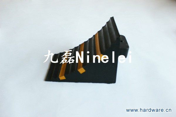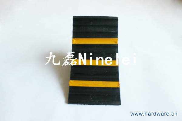 车轮止步器,通常被广泛使用在各类重型车辆较多的停车场,如物流交换场、码头、机场等地面有一定斜度的场合。同时,也被广泛应用于车辆在上下坡时因机械故障而引起的车辆无法行驶时为司机解困修理。前端可粘贴优质反光膜,方便夜间及其他环境光线暗淡的情况下安全需要。